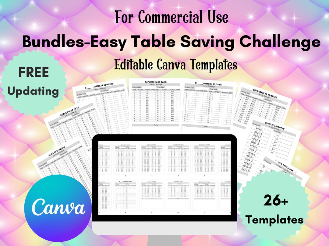 Editable Canva Savings Challenge Templateslow Income Savings Etsy