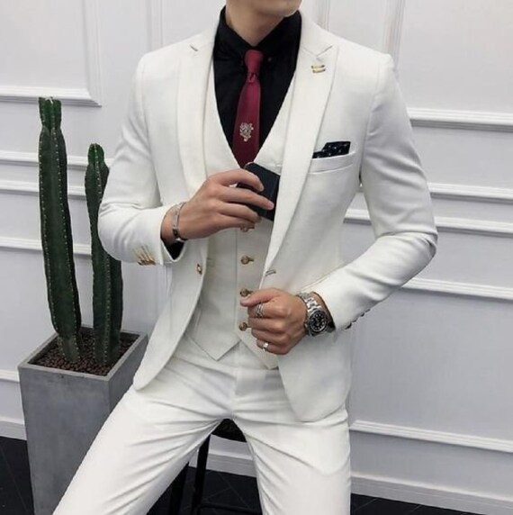 Men White Wedding Suit Elegant Luxury Formal Fashion Groom Party Wear 3 Piece Suits Etsy Norway
